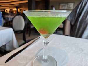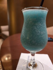 Lunch was being served in the Capri Dining Room and if you know Princess, you know they serve a dessert on sail away day that isn’t served anytime else – the orange souffle. A picture of it is in the album below, along with the lunch menu itself, and I have to say it’s absolutely delicious. While in the main dining room, I was able to acquire what would become one of the very few drinks I was able to consume on the trip – Dunes.