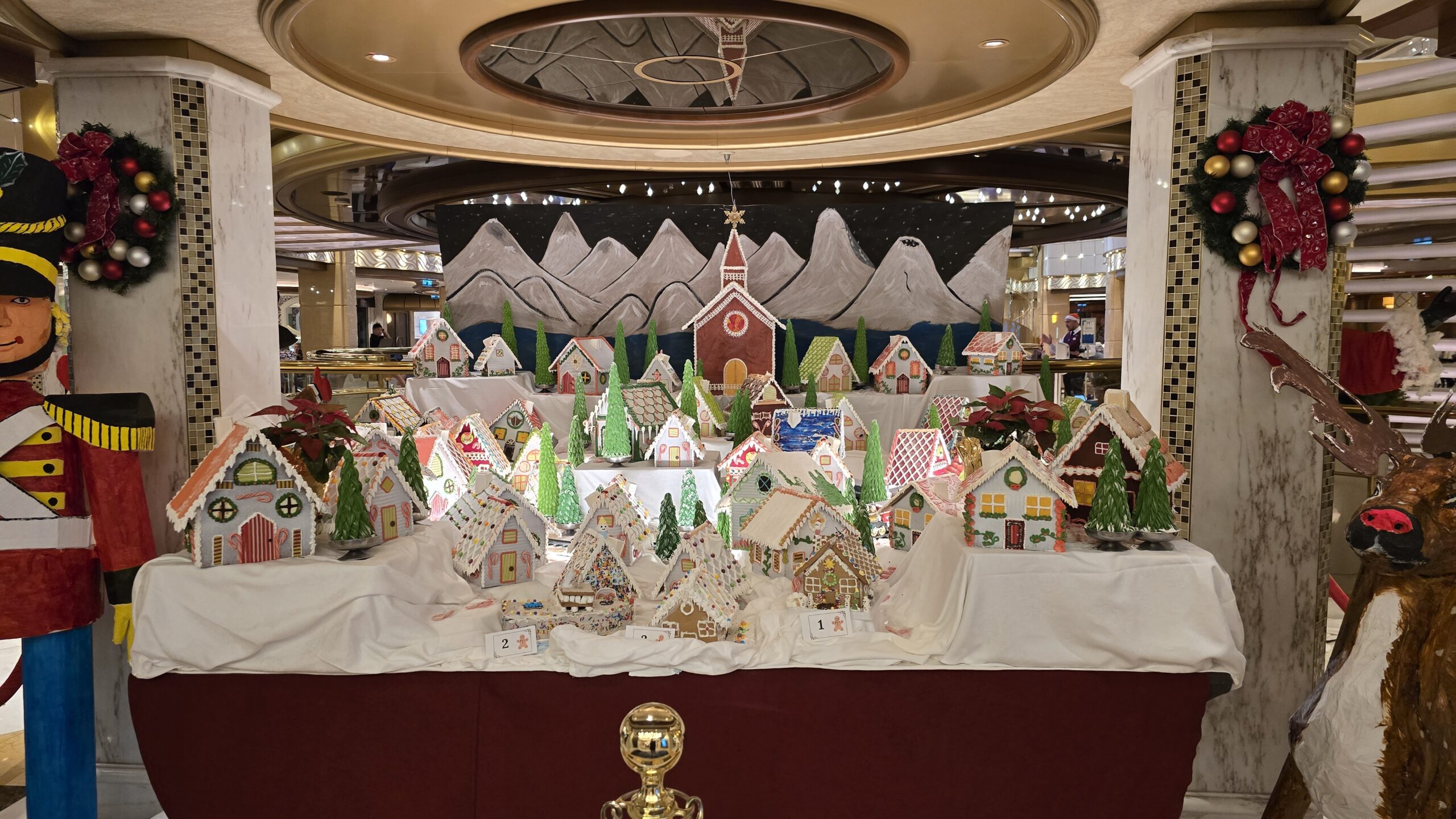 I thought I might counteract the in-person service problem by using the OceanNow app to order beverages. This was a hit or miss venture. Once while doing Christmas movie trivia, we placed an order for drinks using the app and requested delivery to our table. By the time trivia was over, the drinks were still missing. However they had definitely deducted the beverages from our 15 beverage per day allotment, which was something I found myself remediating a few times by the end of the sailing.
